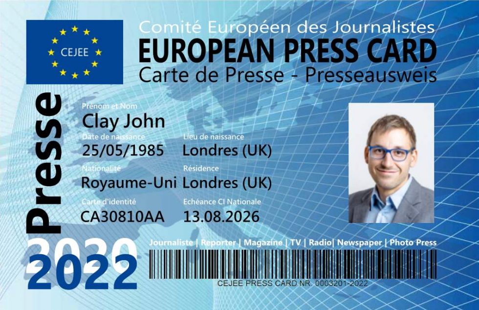 Delivrée aux membres du Comitè Européen des Journalistes la Carte de Presse Européenne permet aux professionnels des médias d’etre instantanément identifiable dans les differents pays de l’Union Européenne et dans le monde entier.